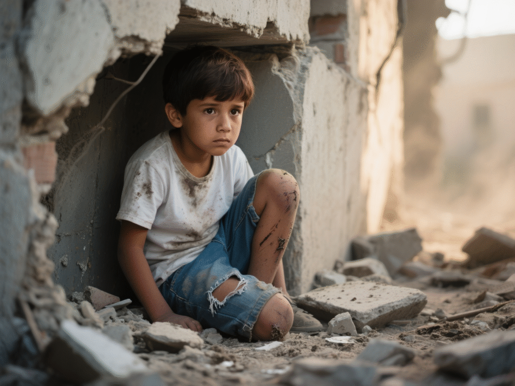 “Eu vou nascer outra vez” é o grito silencioso de uma criança que sobreviveu ao impossível. Entre ruínas e medos, ela aprendeu que o coração pode voltar a bater forte, mesmo depois da dor. Nos olhos, ainda mora a sombra da guerra, mas também a centelha de um novo começo. Agora, cada sorriso é um ato de coragem, cada brincadeira uma vitória contra o passado. Ela não esquece — transforma. Porque nascer outra vez não é voltar ao início, é continuar — com cicatrizes, mas com a alma cheia de luz e a esperança de, finalmente, ser feliz.